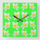 Green Frangipani Delight, Large Square Wall Clock. Clock