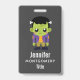 A name tag with a fun Halloween image featuring a green Frankenstein monster.