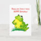 A lighthearted birthday card with a cute green frog and red lettering that says, 'Hope you have a very HOPPY Birthday! Blank inside for your own message.