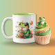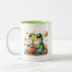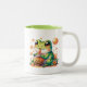 Green Frog Drinking Orange Boba Bubble Tea Two-Tone Coffee Mug