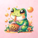 Frog Drinking Orange Boba Bubble Tea PartyDesigned by Sarah James