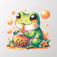 Green Frog Drinking Orange Boba Wall Decal