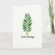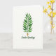 This card features a tall green frond rising up the center on a white background, with many narrow leaves in light and deep green that curve as if caught by a soft breeze 🌷. The upward sweep gives the design a gentle, reaching energy, like a quiet gesture of care between close friends. At the base of the plant sits a small brown cross, simple and earthy, adding a grounded focal point beneath the greenery. Centered below the artwork, the words “Easter Greetings” appear in flowing cursive lettering in a dark green that matches the stem. The generous white space around everything keeps the look airy and calm, letting the greens and brown stand out without distraction. The balanced spacing and tidy alignment feel like a steady, reassuring presence, as if the card is offering a calm hand to hold 🐇. The leaves show soft line details, with alternating shades of green along each blade and a slim dark-green stem running straight up the middle.