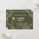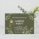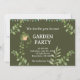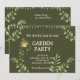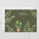 An invitation with white lettering on a green background and with lots of green plants and flag lines.
