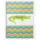 It's easy to personalize this colorful chevron stripe and green gator notebook with a name before ordering!