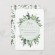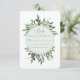Gold geometric frame leafy wedding reply card. Green metallic frame with leafy watercolor foliage decoration. Part of a collection.