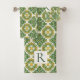 Green geometric Mediterranean tile monogram Bath Towel Set