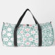 Modern stylish gym bag featuring a muted green geometric pattern all around with the left and right side in plain matching green.