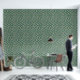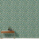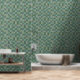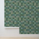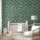 Textured Vinyl Wallpaper with a pattern of various shades of green ceramic field tiles. This design comes from Oregon tile maker Fay Jones Day.