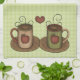 Two country style coffee mugs decorated with apples and a heart between them on a green gingham background. Folkart design for a country style home.
