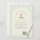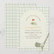 Celebrate in style with this preppy golf baby shower invitation featuring a fresh green plaid gingham check stripe design and classic calligraphy details. Inspired by a playful day on the course, it is perfect for a boy baby shower or chic golf party invitations with a modern simple feel. Easily personalize names, date, and location to match your event. Create a polished and memorable invite your guests will love. Personalize yours today.