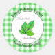 Green gingham and a cute illustration of mint leaves with text templates in a classy font pairing for you to customize with your own private label details.