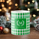 Custom Monogram Mug, Green Gingham Pattern Design - 6 colors.