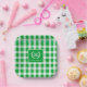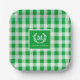 Custom Monogram Paper Plates Green Gingham Pattern Design - 6 colors.
