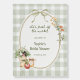 The sign is adorned with a delicate watercolor hand-drawn oval frame with a green bow, offering an elegant and serene border that encapsulates your bridal shower details. This frame is set against a charming green gingham background, evoking the timeless appeal of cozy cottage style.