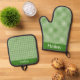 Green Gingham Oven Mitt & Pot Holder Set