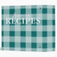 Green gingham pattern kitchen recipe binder book