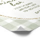 The sign is adorned with a delicate watercolor hand-drawn oval frame with a wildflower bouquet and a green bow, offering an elegant and serene border that encapsulates your bridal shower details. This frame is set against a charming green gingham background, evoking the timeless appeal of cozy cottage style.