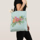 Green Gingham with Peony Flowers Tote Bag