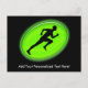 Glowing lime green shape with silhouette of a sprinter taking off in the race. Perfect for a personal trainer, fitness instructor, sports and agility coach or team training or fitness center business. View matching items including t-shirts, mugs, hats, business cards, letterhead and more!