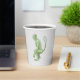 The big green goblin on gray paper cups.