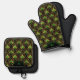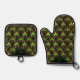 Green Gold Art Deco Pattern on Black Oven Mitt & Pot Holder Set