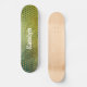 Spread some flair on your city streets with this personalized, custom name skateboard. Modern, trendy, white distressed, edgy typography and graphic, gold foil dots overlay a green watercolor textured background. Makes a cool and stylish statement every time you surf the pavement. A great gift for someone special, including yourself!