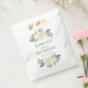 This garden-inspired wedding favor bag features the couple's monogram names and wedding date set against a lush arrangement of watercolor greenery, soft florals, and gold-tipped leaves. The elegant serif typography and natural botanical palette create a refined yet organic aesthetic. All text is fully customizable. Perfect for reception treat stations, candy buffets, or guest thank you favors.