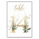Beautiful table number card with a botanical motif - a watercolor illustration of green and gold leaves. Table 14. Please, check all available numbers