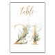 Beautiful table number card with a botanical motif - a watercolor illustration of green and gold leaves. Table 21. Please, check all available numbers