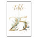 Beautiful table number card with a botanical motif - a watercolor illustration of green and gold leaves. Table 25. Please, check all available numbers
