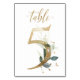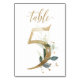 Beautiful table number card with a botanical motif - a watercolor illustration of green and gold leaves. Table 5. Please, check all available numbers