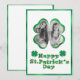 This custom St. Patrick's Day greeting card features lucky clover photo frame. The frame features a gold glitter and green foil design. A sample photo is placed inside which you can personalize to include your own custom photo or other image. The Happy St. Patrick's Day greeting is printed in a matching green foil and gold glitter bubbly font. Two clovers are placed on either side.