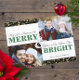 Green & Gold Holiday Greenery Pattern 2-Photo Card