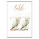 Beautiful table number card with a botanical motif - a watercolor illustration of green and gold leaves. Table 22. Please, check all available numbers