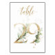 Beautiful table number card with a botanical motif - a watercolor illustration of green and gold leaves. Table 29. Please, check all available numbers