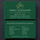 Promote your construction or architecture brand with this modern green and gold business card, featuring a sleek, professional layout with clean typography. The deep green palette symbolizes growth and stability, while gold accents highlight quality, precision, and craftsmanship. Ideal for builders, contractors, architects, and real estate developers who want a refined, print-ready design that makes a powerful impression.
