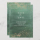 Ethereal and Modern, this Green and Gold Abstract Watercolor save the date is perfect for an event in any season. Emerald green watercolor is a perfect backdrop for the abstract gold splashes. *gold splashes have a high resolution metallic-look, but will NOT be shiny or foiled when printed. All text is editable, you can type in your own information to the right of the image, by clicking the blue "Personalize" button.