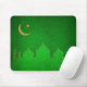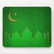 Elegant islamic illustration: golden mosque silhouette with a moon and a star on a grungy green background.