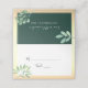 Modern, botanical, elegant gold and emerald green wedding place card, with watercolor greenery and simple calligraphy script.