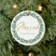 GREEN GOLD RED BERRIES WREATH CHRISTMAS BLESSED CERAMIC ORNAMENT