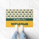 Oversized elegant argyle pattern in school colors of dark green and bright yellow set the backdrop for this design. Welcome in large letters and your family name included. Great idea for a house-warming! Design comes in maroon and gray, burnt orange and gray, red and black, green and black, orange and navy, green and yellow, and purple and gray. Matching products available.