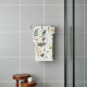Festive and elegant bath towel featuring a green, and gold holiday pattern with watercolor florals, snowflakes, pine leaves, and ornaments. Blending geometric and abstract botanical elements with a boho bohemian touch, it’s perfect for winter and autumn bathroom decor.