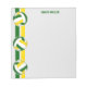 This volleyball themed notepad features 3 team color volleyballs with green, gold and white panels overlying green and gold vertically oriented varsity stripes on the left edge - coach's name is customizable - by katz_d_zynes
