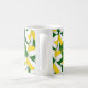 This green and gold volleyball team colors coffee mug can be customized with the coach's name on a simple white volleyball graphic on one side of the mug and the team's name, school name and sports season/year on a second white volleyball graphic on the other side - background is a grouping of green, gold and white volleyballs arranged in an oversized mirrored pattern -- by katz_d_zynes