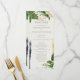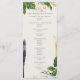 This program has green watercolor tropical leaves and simulated gold foliage. The copy is editable and the font can be changed. The back has a matching pattern. Great for summer and beach weddings!
