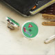 Green personalised golfer, wearing a cap, deep red shirt and blue pants, putting a golf ball monogram lapel pin. Customise the text.