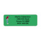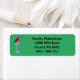 Green golfer, wearing a cap, red shirt and blue pants, putting a golf ball into a hole design party return address label. Customize the text.