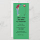 Green golfer, wearing a cap, red shirt and blue pants, putting a golf ball into a hole design party invitation. Customise the text.