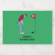 Bright green golfer, wearing a cap, red shirt and blue pants, putting a golf ball into a hole design bottle label. Customise the text.